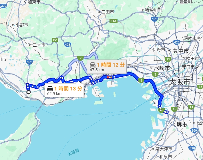 明石市で荷降ろし後、配車係に報告。次の大阪市内へ移動。