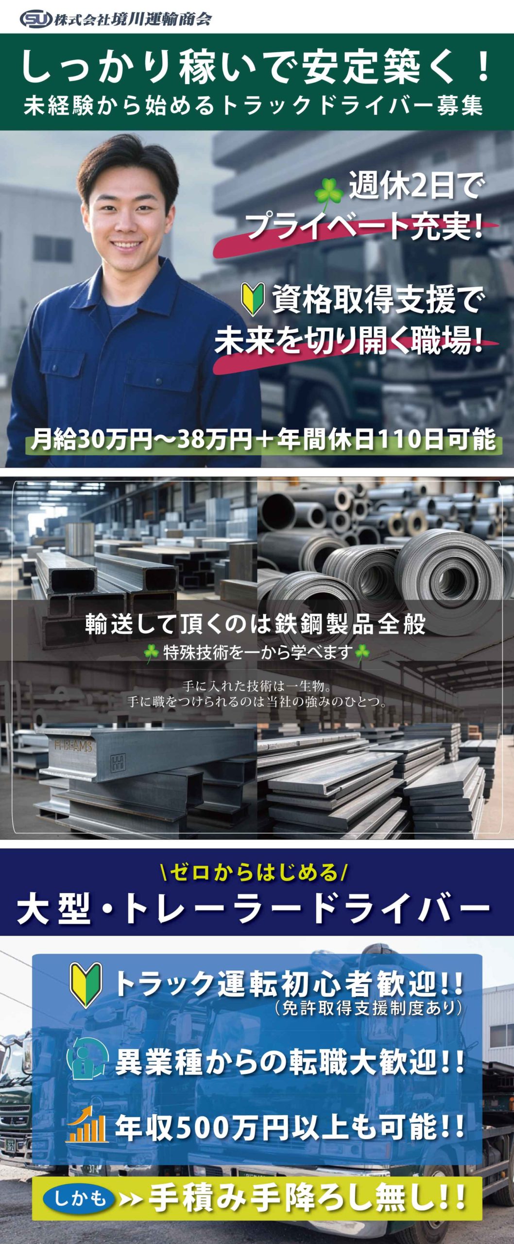 鋼材輸送でスキルアップし、やりがいと安定を手に入れませんか?
